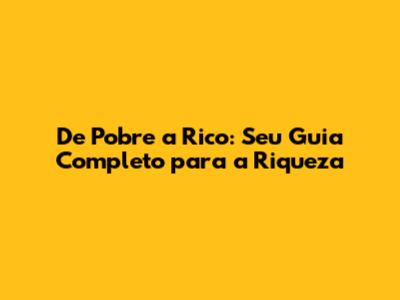 De Pobre A Rico: Seu Guia Completo Para A Riqueza